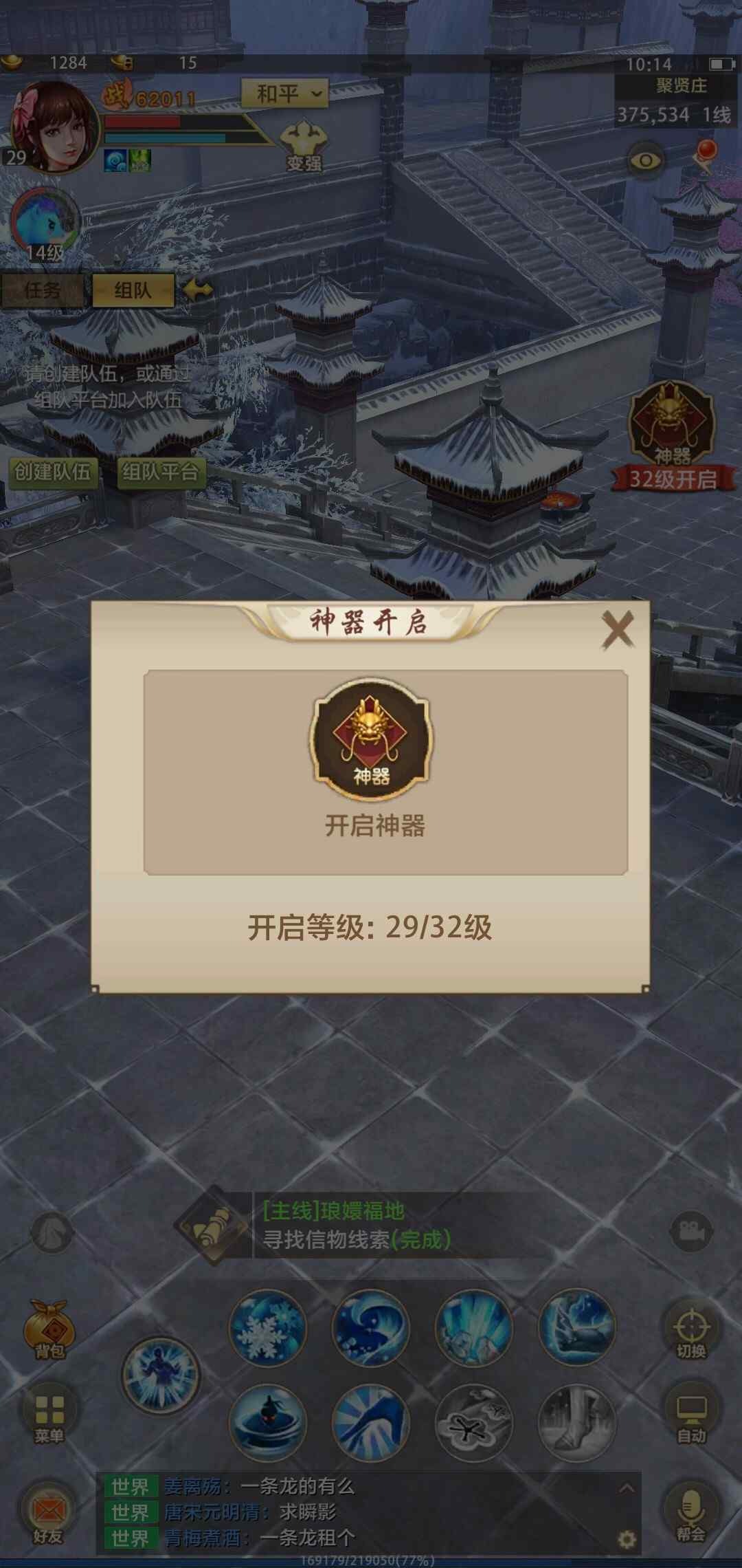 在天龙八部荣耀版中,32级我们将自动开启神器系统,
