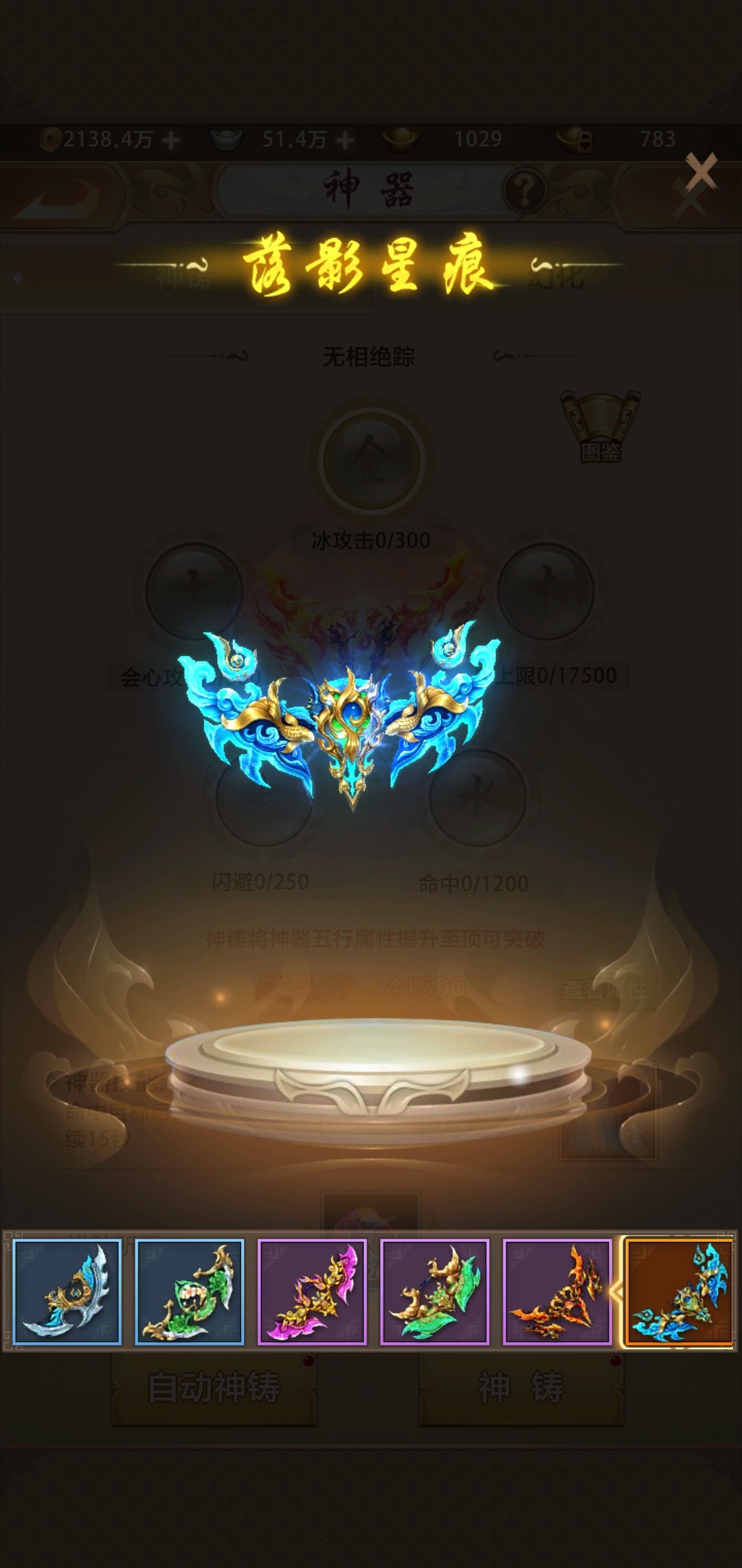 在天龙八部荣耀版中,神器必须先进行神铸,填满5个坑,才能升级。