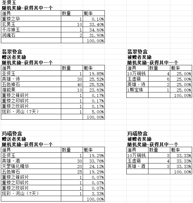 微信小程序 名动江湖 概率公示