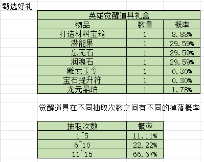 正式服 甄选好礼 概率公示