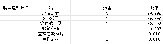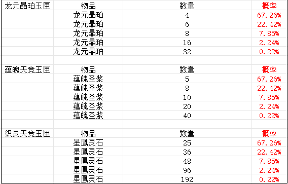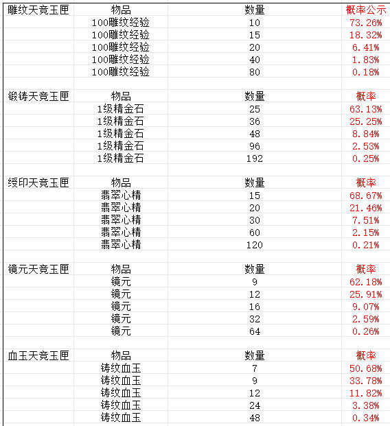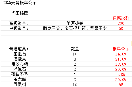 微信小程序 物华天竞 概率公示
