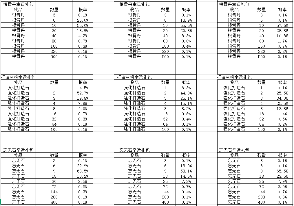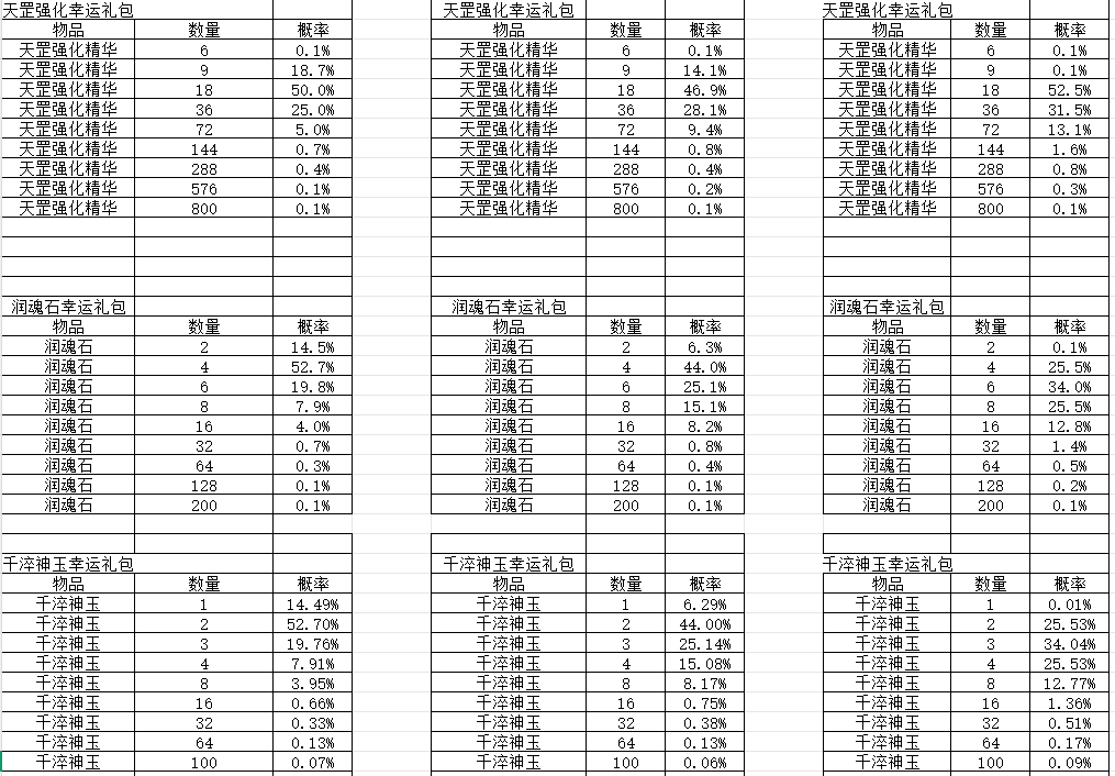 卡级服 天惠阁 概率公示